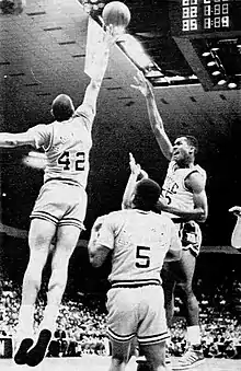 King making a rainbow shot in 1986