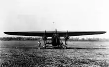 In 1926 the Atlantic Aircraft Company (Fokker's U.S. subsidiary) produced a development of the internally braced high-wing monoplane design, the F.VIIa, powered by three 220 horsepower (160 kW) air-cooled Wright J-5 motors instead of the single 400 horsepower (300 kW) water-cooled Liberty 12 of the T-2. The Army ordered three of the "Transport Airplanes" in September 1926 to be designated C-2 and earmarked the first to be sent to the Materiel Division at McCook Field as the test bed for the radio navigational aid testing about to be authorized.[9][11] This aircraft, Air Corps serial number 26-202, was diverted at Teterboro Airport, New Jersey, for modifications and became the last to be delivered. The wing mounts for the standard 63 feet (19 m) wing were replaced with the center section of the wing mounts for the XLB-2 bomber[n 5] to support a larger 71 feet (22 m) metal wing fabricated by Atlantic.[17]