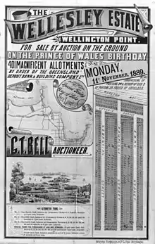 Advertising poster for land sale at Wellington Point (now the area around Bath & Cavell Streets, Birkdale), 1889