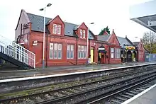The station building viewed from the Liverpool-bound platform.