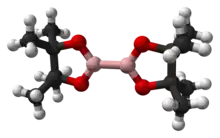 Bis(pinacolato)diboron is a covalent compound containing two boron atoms and two pinacolato ligands. It has the formula [(CH3)4C2O2B]2; the pinacol groups are sometimes abbreviated as "pin", so the structure is sometimes represented as B2pin2. It is a colourless solid that is soluble in organic solvents. It is a commercially available reagent for making pinacol boronic esters for organic synthesis. Unlike some other diboron compounds, B2pin2 is not moisture-sensitive and can be handled in air.[1]