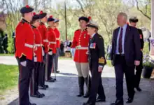 In 1901, the cadet corps took part in the Guard of Honour during the visit of Duke (later King George V) and Duchess of York to Sherbrooke. The Cader Corps was also inspected by the Duke of Devonshire, King Edward VIII in 1919, King George VI in 1939 and Queen Elizabeth The Queen Mother in 1962.[19] In May 1989, the school's annual cadet inspection was inspected by The Duke of Edinburgh with a crowd of two thousand people.[20] The Duke also granted the school's new coats of arms registered under the Royal Heraldry Society of Canada.[22]