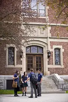 Bishop's University established in 1843 as Bishop's College and was once affiliated with the University of Oxford in 1853, the school remained under the Anglican church's direction from its founding until 1947.[11][31] At the beginning of the establishment, the main students of BCS came from the merchant/political families of the Ross, Gault, Stoker, McConnell, MacLernon, Price, Bronfman, Molson, MacDougall, McNaughton in the Golden Square Mile residential area of Montreal.