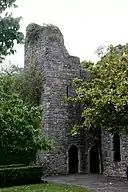 The surviving gatehouse resembles the architecture of Caerphilly Castle, which may indicate that the same master mason worked on both fortifications.[5] This would date the Palace to the time of William de Braose who became Bishop of Llandaff in 1266.[5][6] It is believed the Palace was attacked and damaged by Owain Glyndŵr in the rebellion of 1402–05, and was subsequently abandoned by the bishop of the period,[5] who moved to live at Mathern Palace in Monmouthshire; bishops did not return to live near their cathedral again until 1850. The Bishops Palace was intact in 1610 when it was shown in a plan by John Speed, but was probably destroyed during the English Civil War.[7]