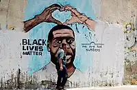 Black-Palestinian solidarity mural depicting George Floyd in Gaza City, 2020.