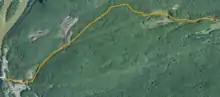 There are a number of pits in the area of Black Creek, some of which are up to 100 feet (30 m) deep. Some are former entrances to mines, while others are strip mining pits.[21] There is standing water in the underground mine workings in the creek's vicinity.[22] It drains a coal sheet known as Mine Sheet No. 1. The creek once flowed over a ledge of conglomerate of the Pottsville Formation 2,000 feet (610 m) upstream of its mouth. An 1887 book described this as "producing an effect especially interesting in the study of creek erosion".[3]