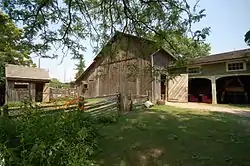 Taylor's Cooperage; this one-and-a-half-storey timber frame structure with board and batten.