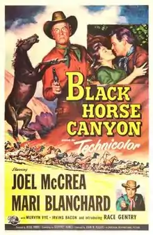 Black Horse Canyon is a 1954 American Western film directed by Jesse Hibbs and written by Daniel Mainwaring and David Lang. It is based on the 1950 novel The Wild Horse by Les Savage Jr.. The film stars Joel McCrea, Mari Blanchard, Race Gentry, Murvyn Vye, Irving Bacon and John Pickard. The film was released in June 1954, by Universal Pictures.[1][2][3]