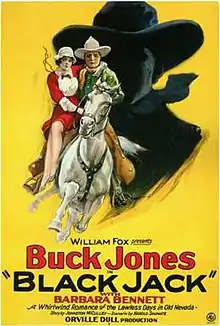 Black Jack is a lost 1927 American silent Western film directed by Orville O. Dull and written by Harold Shumate. The film stars Buck Jones, Barbara Bennett, Theodore Lorch, George Berrell, Harry Cording and William Caress. The film was released on September 25, 1927, by Fox Film Corporation.[1][2][3]