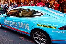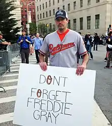 In August, several professional athletes began participating in National Anthem protests. The protests began in the National Football League (NFL) after Colin Kaepernick of the San Francisco 49ers sat during the anthem, as opposed to the tradition of standing, before his team's third preseason game of 2016.[202] During a post-game interview he explained his position stating, "I am not going to stand up to show pride in a flag for a country that oppresses black people and people of color. To me, this is bigger than football and it would be selfish on my part to look the other way. There are bodies in the street and people getting paid leave and getting away with murder,"[203] a protest widely interpreted as in solidarity with the Black Lives Matter movement.[204][205][206] The protests have generated mixed reactions and have since spread to other U.S. sports leagues.