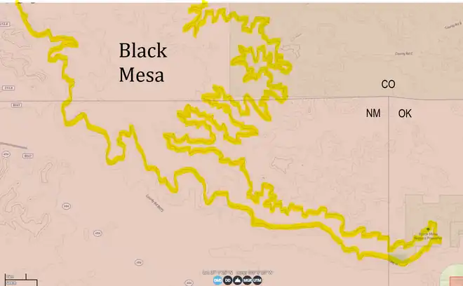 - 1 2 3 4 5 6 7 8 Lewis, Tom; Richter, Sarah Jan. "Black Mesa". Encyclopedia of Oklahoma History and Culture. Oklahoma Historical Society. Retrieved June 30, 2015.