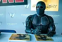 Black Noir[4] is the name of three supervillain characters from the comic book series The Boys, created by Garth Ennis and Darick Robertson, and the television series and franchise of the same name, developed by Eric Kripke. In both the comic and TV series, Noir is a member of the hedonistic and reckless Vought-American superhero group the Seven and is depicted as a "silent ninja" type parody of Batman, Snake Eyes and Deathstroke.