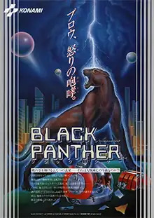 Black Panther (Japanese title name: ブラックパンサー ) is a beat 'em up arcade video game released by Konami in 1987.[1] The player controls a cybernetic black panther cat who has to save the Earth by clawing, jumping, and shooting at enemies, collecting power-ups, and defeating bosses to advance levels.