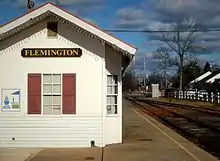 | Flemington (Main Street) | Station building utilized by local bank | Flemington was the former terminus station of the Central Railroad of New Jersey's South Branch in Flemington, New Jersey. Service at the station began on July 1, 1864 and passenger service was discontinued on April 25, 1953. |