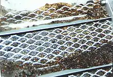 Black sand is sand that is black in color. One type of black sand is a heavy, glossy, partly magnetic mixture of usually fine sands containing minerals such as magnetite, found as part of a placer deposit. Another type of black sand, found on beaches near a volcano, consists of tiny fragments of basalt.