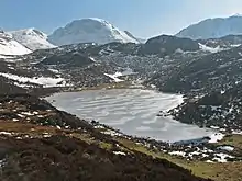 Blackbeck Tarn is a small tarn in Cumbria, England, situated near the summit of Haystacks in the Buttermere Valley.[1] At an elevation of 486 m (1,594 ft), the lake has an area of 0.95 hectares (2.3 acres) and measures 183 m × 80 m (600 ft × 262 ft), with a maximum depth of 2.5 m (8.2 ft).[2]