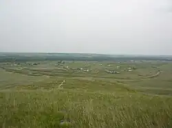 Nearby are the remains of an ancient earthlodge village, believed to have been built by people from the Upper Mississippi valley in what is now the United States. It is unique in being an example of a permanent village on the plains: an area associated with nomadic hunting. The earthlodge village is the only known one of its type on the Canadian Prairies, though they are common in parts of the United States. The creators of the earthlodge village are not known with certainty, but archaeological evidence points to it being founded around 1740 CE, possibly by a band of migrating Mandan people[4] or their allies the Hidatsa (possibly before the Hidatsa and Crow people split).[5]