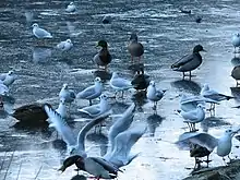 The pond was used by the Waverley Curling Club, which formed in 1848 from members of the Merchiston Curling Club.[6] Photographs show curling was played on the pond well into the 20th century.[7] The pond often freezes over sufficiently to support the weight of birds, but does not freeze solidly enough to safely support a human.