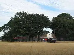 During the Second World War the original house was badly damaged by bombing and it was subsequently demolished in 1946.[1] After the war the purpose-built drill hall was enlarged to accommodate better messing facilities and to incorporate the staircase from the old house.[1] The 34th Searchlight Regiment evolved to become the 569th (The Queen's Own) Searchlight Regiment Royal Artillery after the war[2] but, following an amalgamation, the searchlight unit left the site in 1955.[4] The drill hall was instead occupied by a rifle company of the 10th Battalion the Parachute Regiment. The drill hall is still in use as the home of 265 (Kent and County of London Yeomanry) Support Squadron, Royal Corps of Signals[5] and sector headquarters and 94 Cadet Detachment Royal Regiment of Fusiliers, Army Cadet Force.[2]