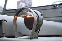 Blackout driving lights are mounted on the driver's side of the vehicle, typically on the fender or grille. They give off a diffused beam of white light that takes the place of regular headlights when driving under blackout conditions. It is intended to give off just enough light for the driver to make their way. Blackout driving lights are also hooded, making the light only able to be seen when looking up at it. With the use of night vision goggles the effectiveness of the blackout driving light can be increased.[1]
