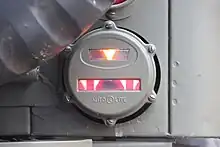 Blackout marker lights serve the purpose of marking the position of the vehicle during blackout driving. They also are used as an aid in keeping the proper safe following distance when driving in a convoy at night. US Military marker lights are designed with a series of "cat eyes" that appear differently depending on the distance one is away from the vehicle that is equipped with the lights. When the following distance is too far the rear marker lights appear as a single red light and when too close as four separate red lights. When the correct following distance of 180 to 60 feet is maintained the taillights appear as two red lights.[2]