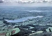 Aerial photograph showing Blagdon Lake in the foreground and Chew Valley Lake in the distance.