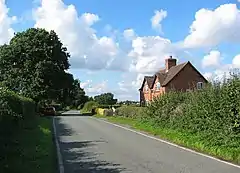 The parish contains one building designated by English Heritage as a listed building. This is Blakenhall Farmhouse, which is listed at Grade II.[30] Grade II is the lowest of the three gradings given to listed buildings and is granted to "buildings of national importance and special interest".[31] The farmhouse dates from the 17th century, and is constructed in brick with a tiled roof. It is in two storeys, and has a three-bay entrance front with three gabled dormers. Inside the farmhouse is an inglenook with a bressumer.[30] A red-brick former Wesleyan Methodist chapel in Blakenhall village dates from 1900.[2]