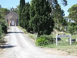 St James Church of England, in the town of Blakiston, is the fifth oldest Anglican Church in South Australia. The 10 acres (4.0 ha) plot of the church, cemetery and rectory was bought by George Morphett and Samuel Stocks from McFarlane in 1843 and was given for the building of the church in May 1846. The parsonage was completed, and occupied by the Rev. James Pollitt, in late 1846 and completion of the church building was promised for the following year.[4] Sentence of consecration was pronounced and the church consecrated by the Lord Bishop of Adelaide on 28 April 1848.