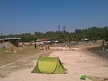The Blausteinsee Leisure and Recreation Area is an artificial lake north of the Eschweiler municipality in the Aachen district of North Rhine-Westphalia, Germany.[1] Its area is around 100 hectares and depth is 46m. It was created during the regeneration of the Zukunft opencast coal mine in the Rhineland coalfield, made by flooding the pit left by the mine with water. Today, the lake is a holiday area for the surrounding towns. The surface of the lake is 129 metres above sea level and its volume is around 25 million cubic metres. The filling of the lake began in 1994.