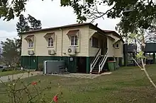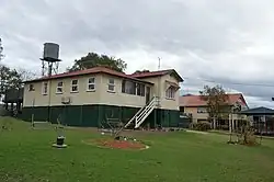 The teachers residencewas constructed on an additional one acre (0.4ha) of land adjacent to the school's eastern boundary, which had been purchased for £15 from John Panzram Jr, in 1930.[46] The building was completed by 14 February 1935.[47] Most Queensland state schools incorporated a teachers residence on the site, particularly in rural areas. In Australia, only Queensland offered free accommodation to teachers, from as early as 1864, with the government policy applying to male teachers only. This was partial recompense for a low wage, an incentive for teacher recruitment in rural areas and provided onsite caretakers. Following World War I, teacher shortages were blamed on the inadequacy and shortage of teachers residences. Consequently, many new teacher residences were constructed across Queensland in the 1930s and again following World War II.[48][49][1]