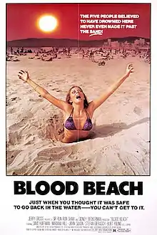 Blood Beach is a 1981 American horror film written and directed by Jeffrey Bloom and starring David Huffman, John Saxon, and Burt Young. The premise, conceived by Steven Nalevansky, involves a creature lurking beneath the sand of Santa Monica Beach that attacks locals and vacationers. The film's tagline is: "Just when you thought it was safe to go back in the water—you can't get to it."