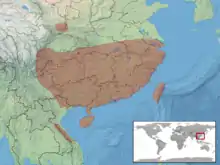 B. kraepelini is found throughout Taiwan to 1,000 m (3,300 ft) asl,[4] large parts of eastern, central, and southern China (Anhui, Chongqing, Fujian, Gansu, Guangdong, Guangxi, Guizhou, Hainan, Hunan, Jiangxi, Sichuan, and Zhejiang provinces), Laos, and northern Vietnam.[1][2]