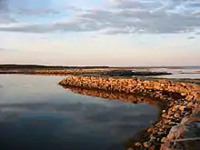 Bolshaya Muksalma (Russian: Больша́я Му́ксалма) is one of the Solovetsky Islands. Bolshaya Muksalma is situated to the east of Bolshoy Solovetsky Island and is separated from it by two straits: Severnye Zheleznye Vorota and Yuzhnye Zheleznye Vorota (literally translated as Northern and Southern Iron Gates). The Yuzhnye Zheleznye Vorota Strait is crossed by a dam which was built by the monks of Solovetsky Monastery between 1865 and 1871 and now connects the two islands. The dam is several hundred meters long and 6.5 metres (21 ft) wide. Southeast of Bolshaya Muksalma, there is Malaya Muksalma Island, as well as a number of tiny islets. The area of Bolshaya Muksalma is 17 square kilometres (6.6 sq mi). In terms of the area, this is the third island of the archipelago behind Bolzhoy Solovetsky and Anzersky Islands.