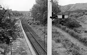 Normal passenger traffic along the Doe Lea Branch dwindled over the years and finally ceased on 28 July 1930.[10][2][3] An unadvertised service continued to call at the station until 14 August 1931 and pre-war excursions continued until at least 27 July 1939.[3][2] Records show that a half-day excursion service called at Bolsover on 26 July 1949 on its way to Bridlington and Scarborough.[3] The last steam train to use the line was an enthusiasts' special on 16 October 1965.[8][11] This train also traversed the Clowne Branch.