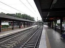The station was opened in 1974 and consists of two side platforms with two rail tracks.