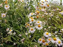 Boltonia decurrens is a rare species of flowering plant in the family Asteraceae known by the common names decurrent false aster and claspingleaf doll's daisy. It is native to the floodplains along the Illinois and Mississippi Rivers in the United States, where the habitat has been drastically altered, leading to its decline. The plant was once distributed across 400 kilometers of riverside forest from LaSalle, Illinois, to St. Louis, Missouri.[3] As the rivers and riparian habitat alongside them have been developed, the plant's distribution has been fragmented into 40 to 43 separate populations.[1] At one point it was thought to have been extirpated from Missouri, but a few populations have been located near St. Louis since the mid-1980s.[1][4] Despite having declined over time, several populations of the plant contain many thousands of individuals.[4] Populations vary depending on the amount and duration of flooding that occurs in the area each year.[1] The plant is a federally listed threatened species.[2][3]