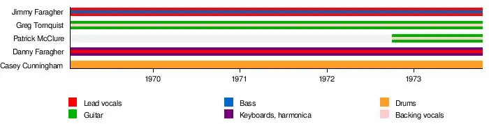 - Jimmy Faragher – lead vocals, bass, occasional guitar (1969–1973)
