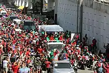 On December 9, 2021, Marcos and his running mate, Sara Duterte, held a "grand caravan" across Metro Manila.[42] Due to the influx of supporters, the motorcade caused heavy traffic along Commonwealth Avenue.[43]