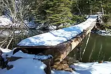 A log and boardwalk trail footbridge in Bonshaw Provincial Park