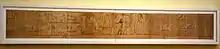 The book derives from Thebes and is dated to the Ptolemaic period, probably around 200 BC. The papyrus was among the grave goods of the Singer of Amun, Nehem-es-Rataui. The Papyrus was written in Hieratic script, completely in black ink. Originally the 21 centimetre high document had a length of 715 centimetres - that is, 15 pages. As a result of damage in the Second World War, when the central city of Hanover was bombed and the Kestner Museum took heavy damage, it only survives in the form of three fragments with a length of 1.64 m, which includes the central scene. The very tight combination of the important Egyptian deities in the central scene is notable. Osiris sits in judgement, Anubis and Horus weigh the heart of the deceased, Thoth records the result and the monstrous Ammit waits to devour the ba of the deceased in the event of a negative judgement. On a lotus bloom between Osiris and Thoth stand the four sons of Horus. The deceased is at the right, accompanied by two goddesses. At other points, the text is broken up by small images, mostly of the Horus falcon. Another large image is located to the left of the main image, divided into four smaller images.