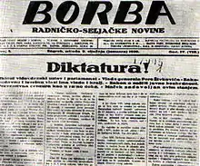 On 13 January 1929, a week following the proclamation of King Alexander's 6 January Dictatorship, Borba got banned.
