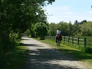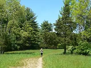 The park has more than 20 miles (32 km) of wooded trails for hiking, mountain biking, and horseback riding. Trails include a portion of the Bay Circuit Trail and the Quarry Loop to Moyles Quarry which supplied the facing stone for the Canton Viaduct in 1835.[6] The park features mansion tours, a visitors center, pond fishing and canoeing, ice skating, sledding, and disc golf. Mansion tours are typically held on Sundays during the months of April through May. The mansion is typically not open to the public other than during these tours, and for special events.[7]