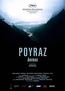 Boreas (Turkish: Poyraz) is a 2006 Turkish short drama film, written and directed by Belma Baş, in which a child observes the rustic life of her elderly relatives in a remote old house in the mountains. The film was premiered in competition at the 59th Cannes Film Festival and was shown at the 43rd Antalya Golden Orange Film Festival, where it won the Special Jury Prize. It was the basis for the director's feature debut Zephyr (2010).