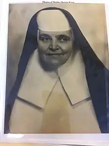 Borgia Egan was born on 22 March 1876. She graduated from Catholic University and Duquesne University. She joined the Sisters of Mercy in 1891, and brought the lessons from the sisters to Erie, Pennsylvania, in the year 1920. Egan became Mother Superior of the Sisters of Mercy in Erie, Pennsylvania and became a well-known and well-liked member of the Diocese of Erie. She was a very enthusiastic speaker for women's higher education and with the assistance and support of Bishop Gannon, she sought to establish an institution of higher education for women in Erie. She founded Mercyhurst College in 1926 and became the first president of the institution, serving from 1926 to 1927.[1] She was known as the "6 foot nun" because she towered over all other students and faculty. She was described by her students as having "a towering stance and ready sense of humor combined with this intellectual prowess to make her an unforgettable woman."[2] She suffered a stroke in 1956 and was hospitalized for three years after. Borgia Egan died at age 84 on 11 February 1962.