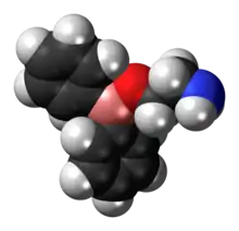 2-Aminoethoxydiphenyl borate (2-APB) inhibits transient receptor potential channels.[24] This kind of inhibition, particularly inhibition of TRPM7, is being studied to find treatments for prostate cancer. 2-APB can work as a catalyst to add an alkyl group from an alkyl halide to a polyol or carbohydrate that contains a cis-vicinal diol to a precise position. It does this by first combining with the two hydroxy groups to make a ring containing OCCOB.[25] It can also calatlyse acid chloride or chloroformate reaction a specific region of the diol.[26]