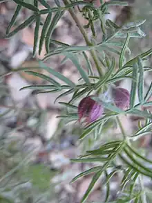 Boronia lanuginosa is a perennial[4] of a height from 0.4–1.5 m (1–5 ft).[5] The leaves are pinnate, the pinnae being linear with revolute margins.[5] Its flowers are white to pink and it flowers and fruits from January through to November[4] (January to September.[5])