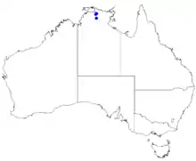 This boronia grows on sandstone rocks and cliff faces and is only known from the Ja Ja formation in Kakadu National Park.[2][3][4]