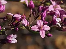 Boronia tenuior is a species of flowering plant that is endemic to Western Australia. It is an open shrub with thin, square stems, simple, serrated leaves, and pink to mauve, four-petalled flowers.