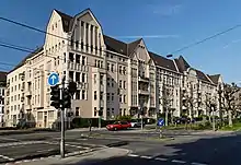 ![]() Aerial view of Düsseldorf-Oberkassel, looking East across the Rhine | |