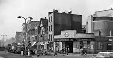 During the Second World War, parts of the disused tunnels between Borough and the south side of the River Thames were adapted into a large public air-raid shelter by Southwark Borough Council. The shelter had six entrances along Borough High Street; it opened on 24 June 1940 and closed on 7 May 1945.[7] A plaque at the station records this.